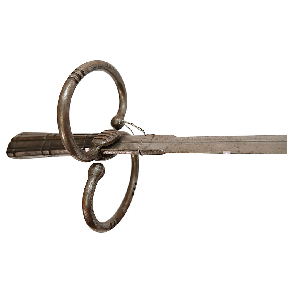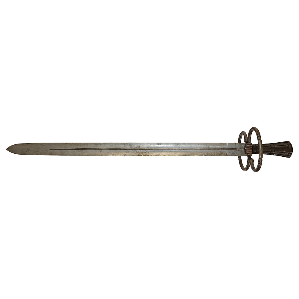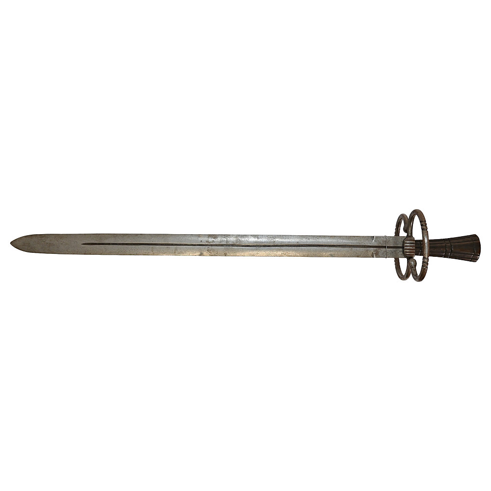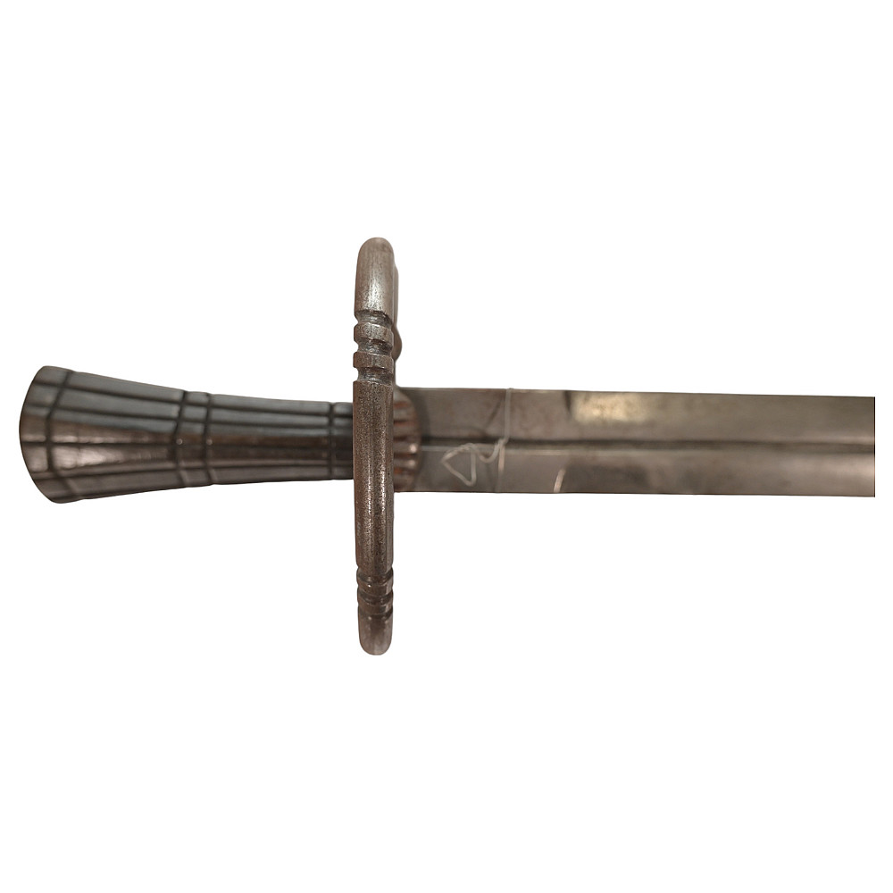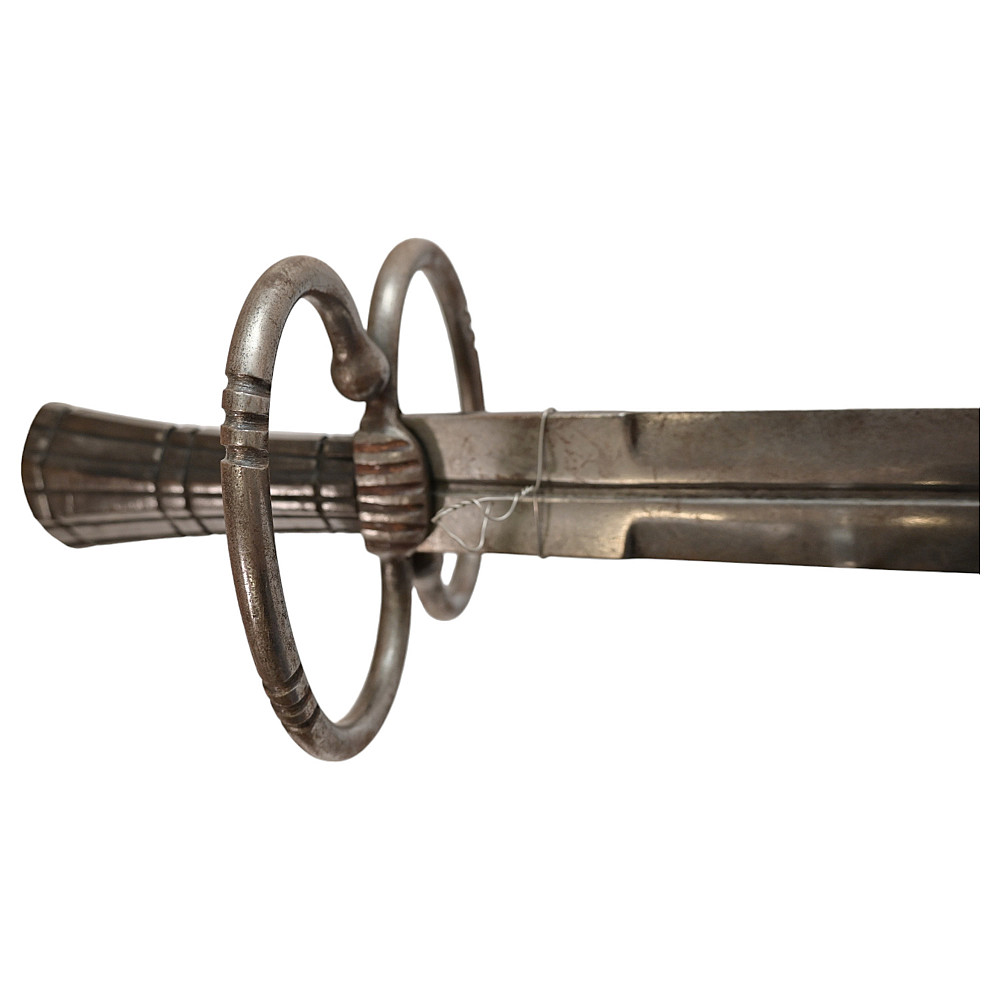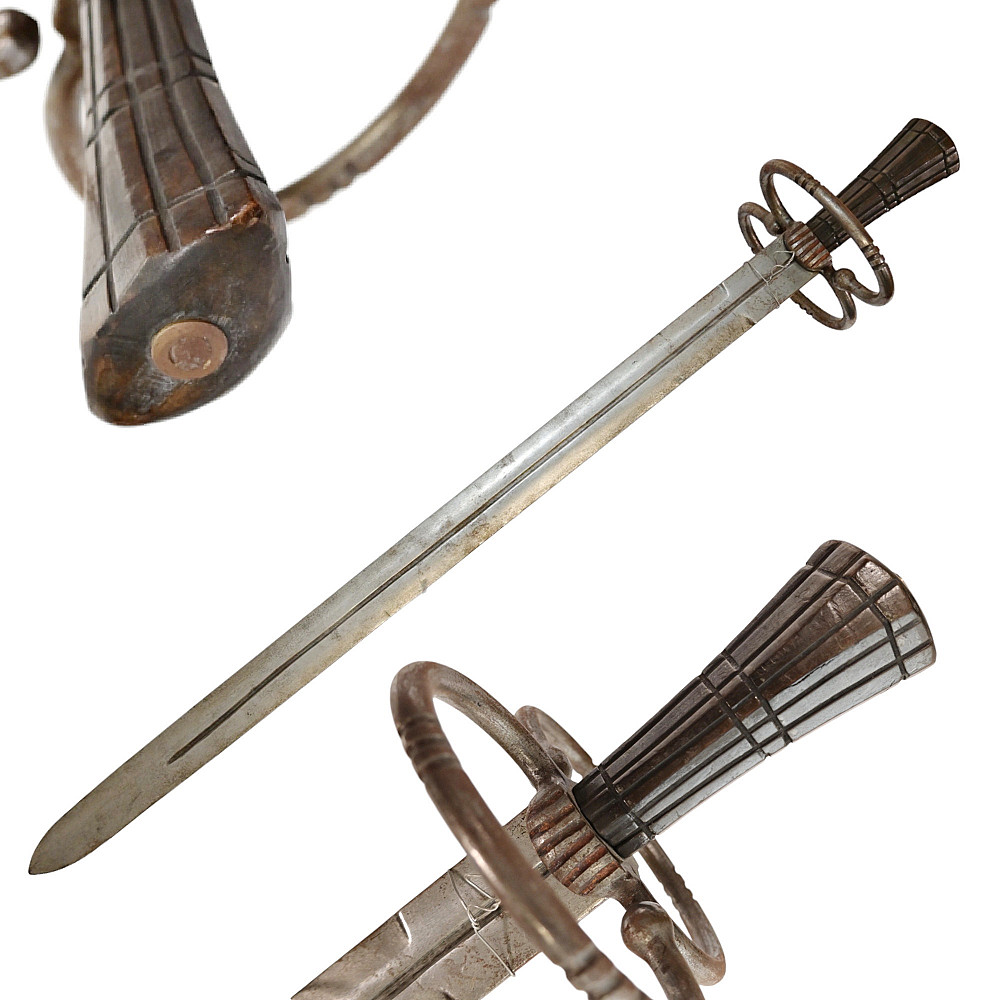 A Katzbalger Landsknecht Sword, in the style of the 16th century. Straight blade with one fuller on each side. Typical, S - shaped, grooved hilt with knots. Wooden grip with longitudinal grooves. Germany 19th century. A nice collector's item in excellent condition.