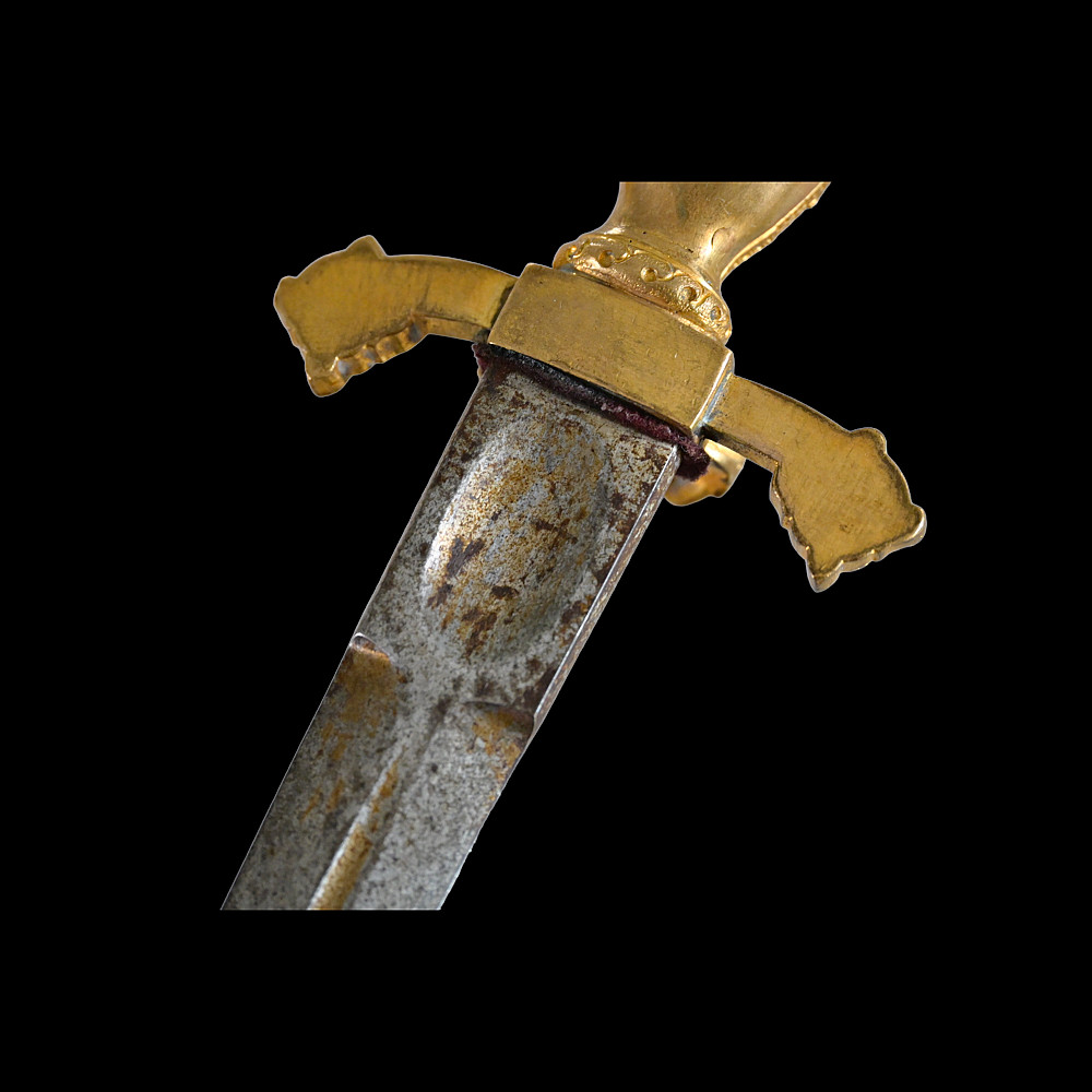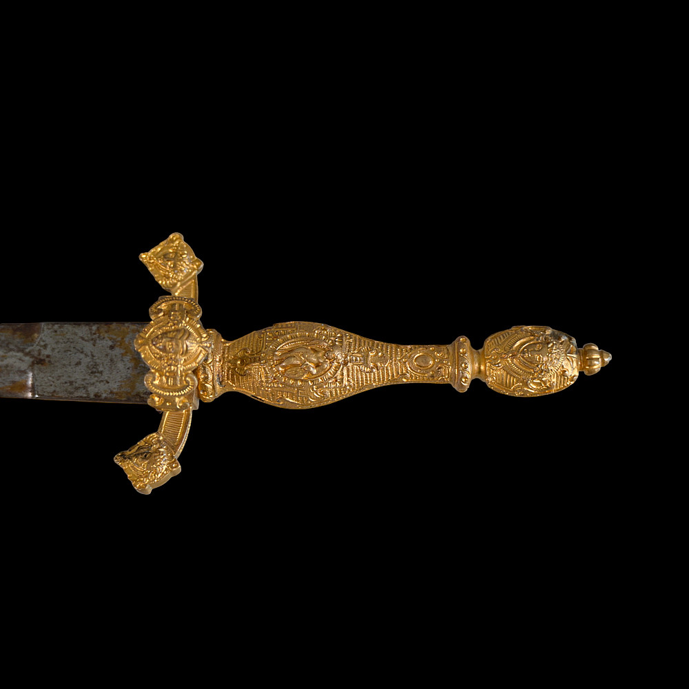 Left hand dagger in 16th century style. The handle is engraved and gilded. Guard with a ring. France, 19th century