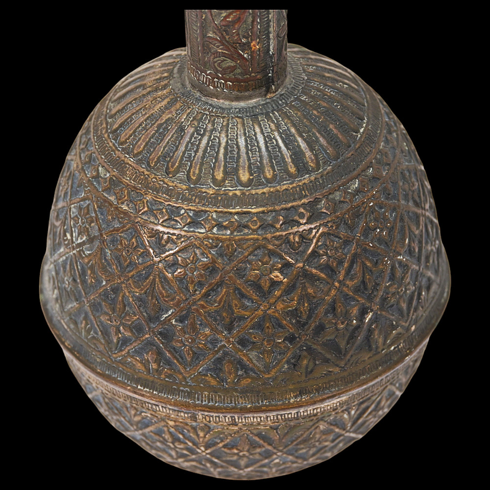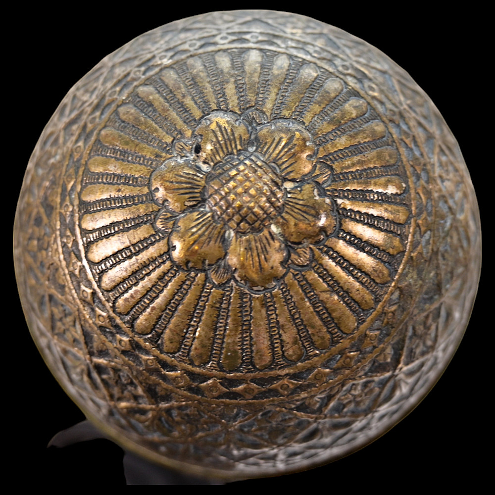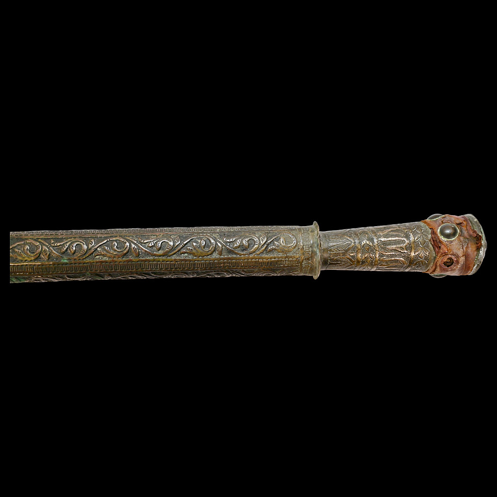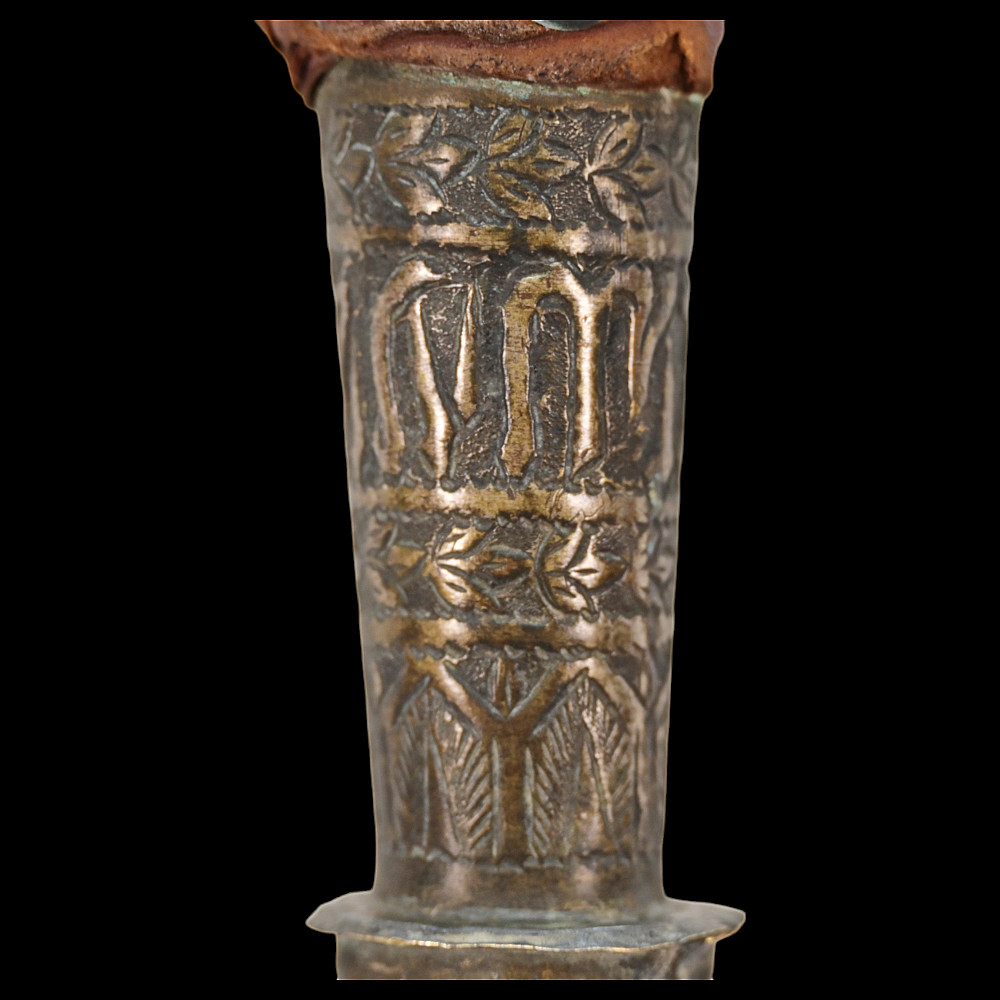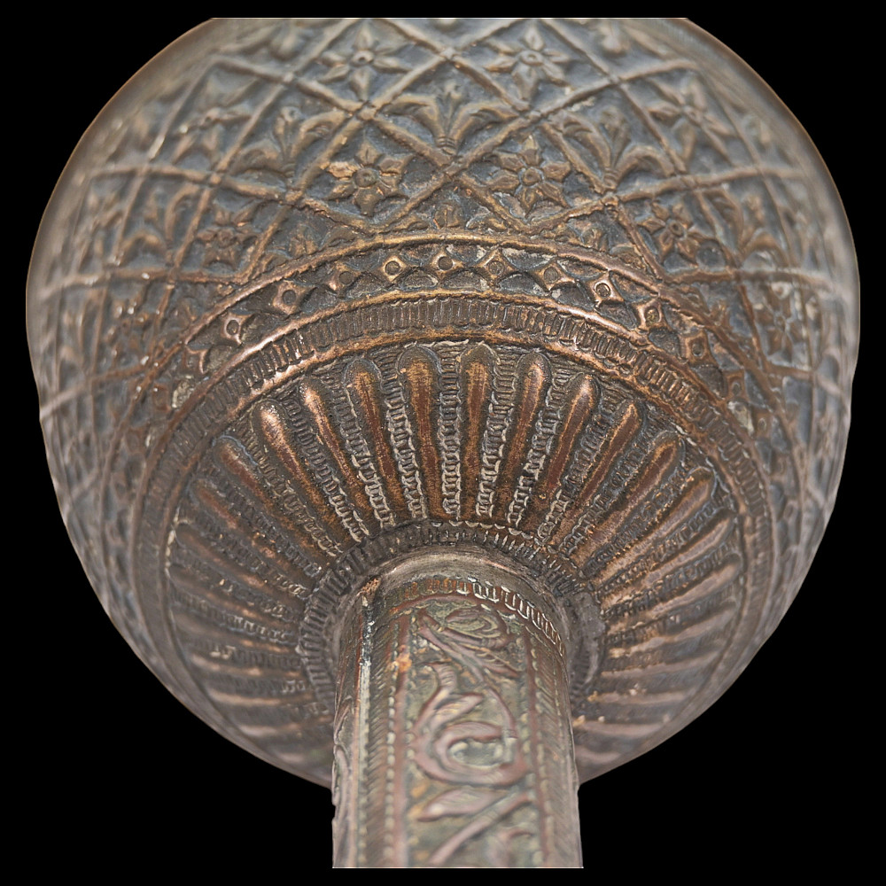 A Rare, Islam, decorated mace, large size, Indo-Persian region, 18th century. The entire surface is richly decorated with floral and geometric designs, made with high-quality embossing. There are descriptions in Arabic on the handle. There is a leather wrap at the end of the handle. Rare collector's item in good condition. Length 74 cm.
