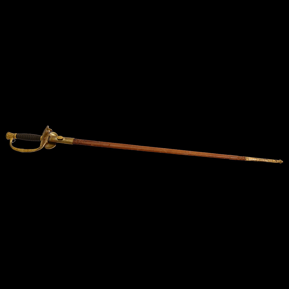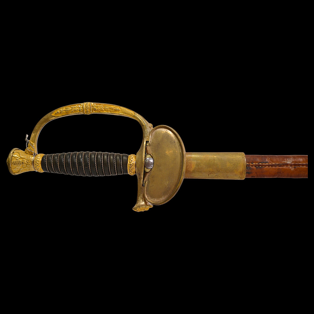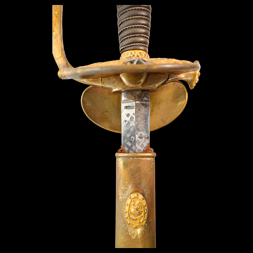 Brigadier general's sword, model 1817, France, Louis XVIII period. Bronze, gilded hilt with a horn handle wrapped in a spiral with silver wire. Leather scabbard with two gilded brass fittings. A superb collector's item.