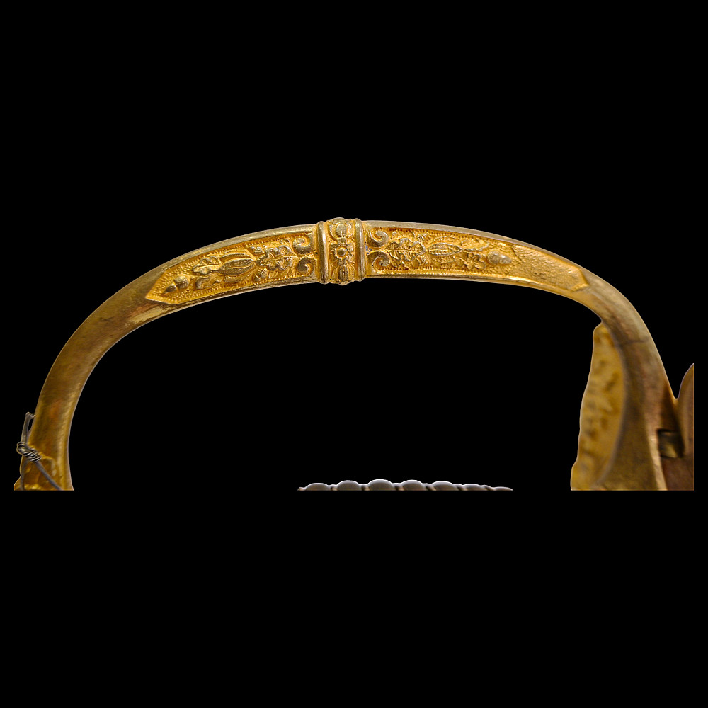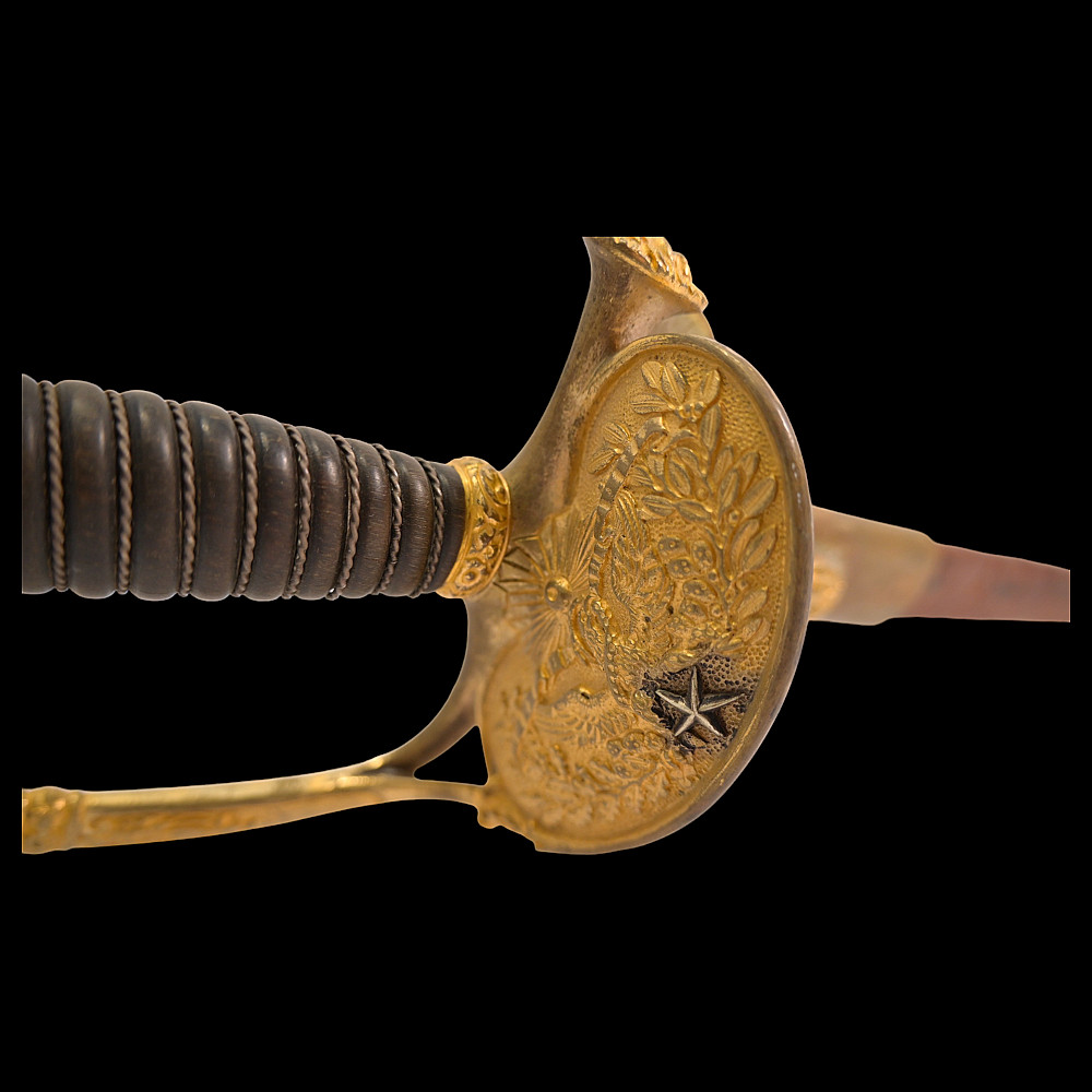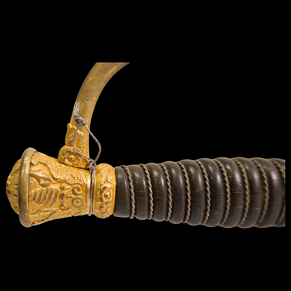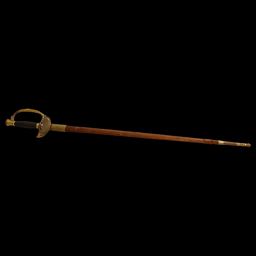 Brigadier general's sword, model 1817, France, Louis XVIII period. Bronze, gilded hilt with a horn handle wrapped in a spiral with silver wire. Leather scabbard with two gilded brass fittings. A superb collector's item.
