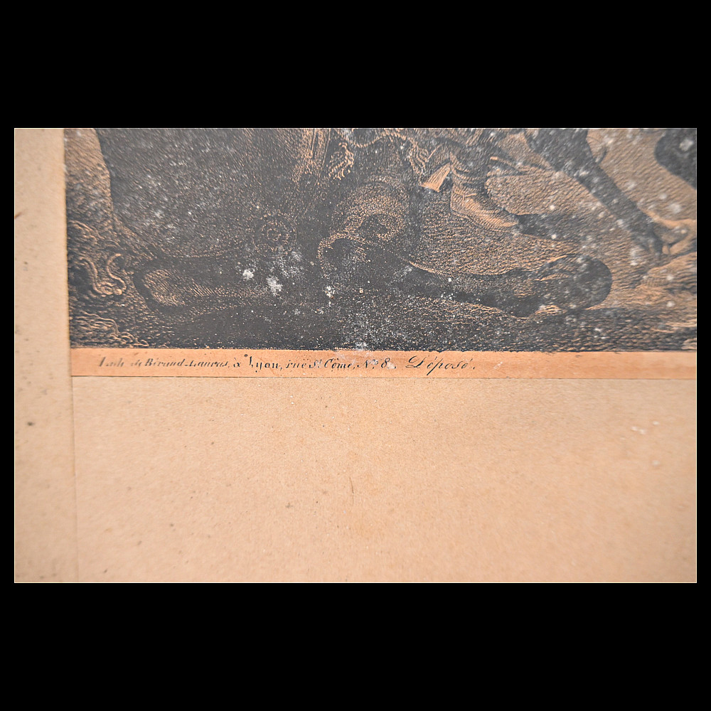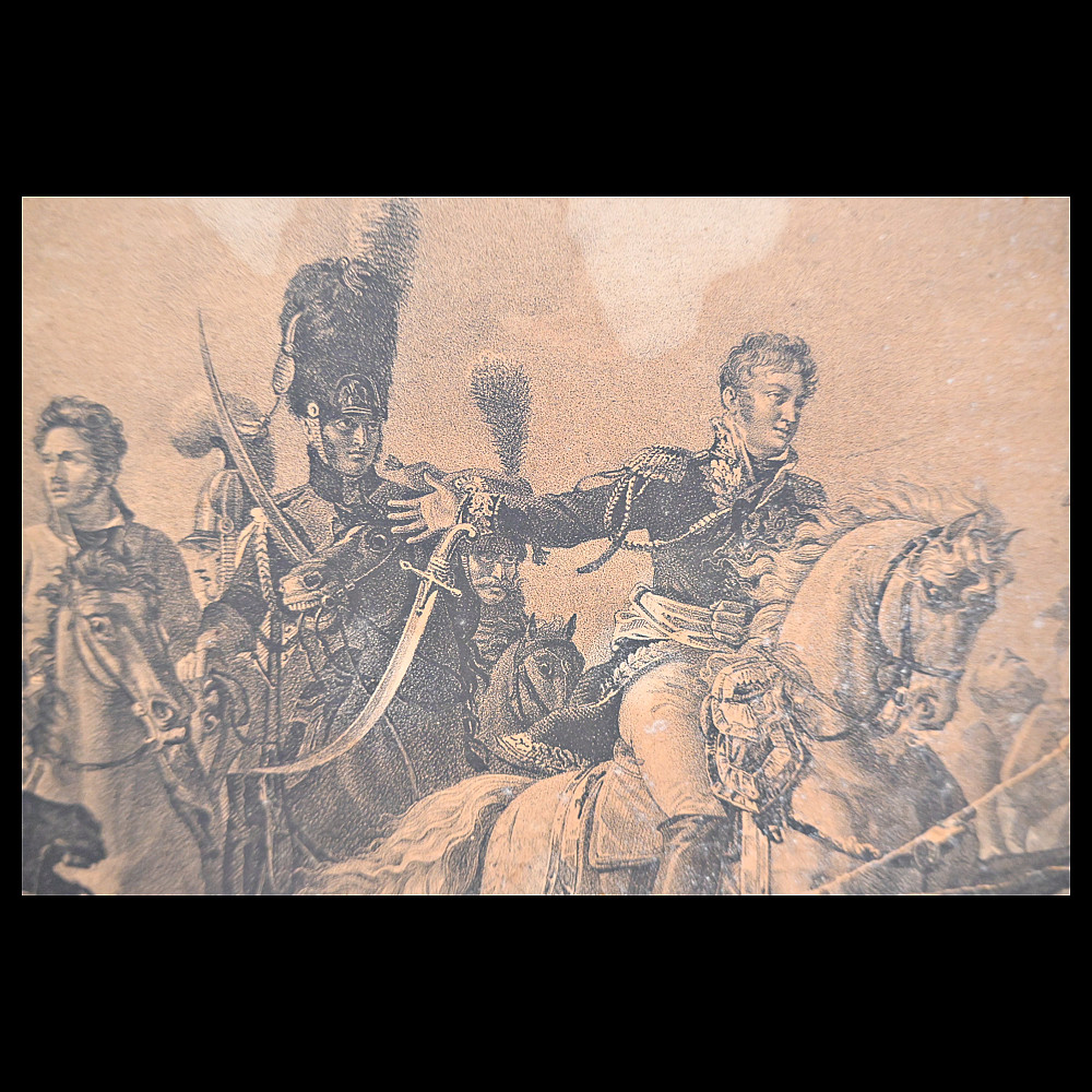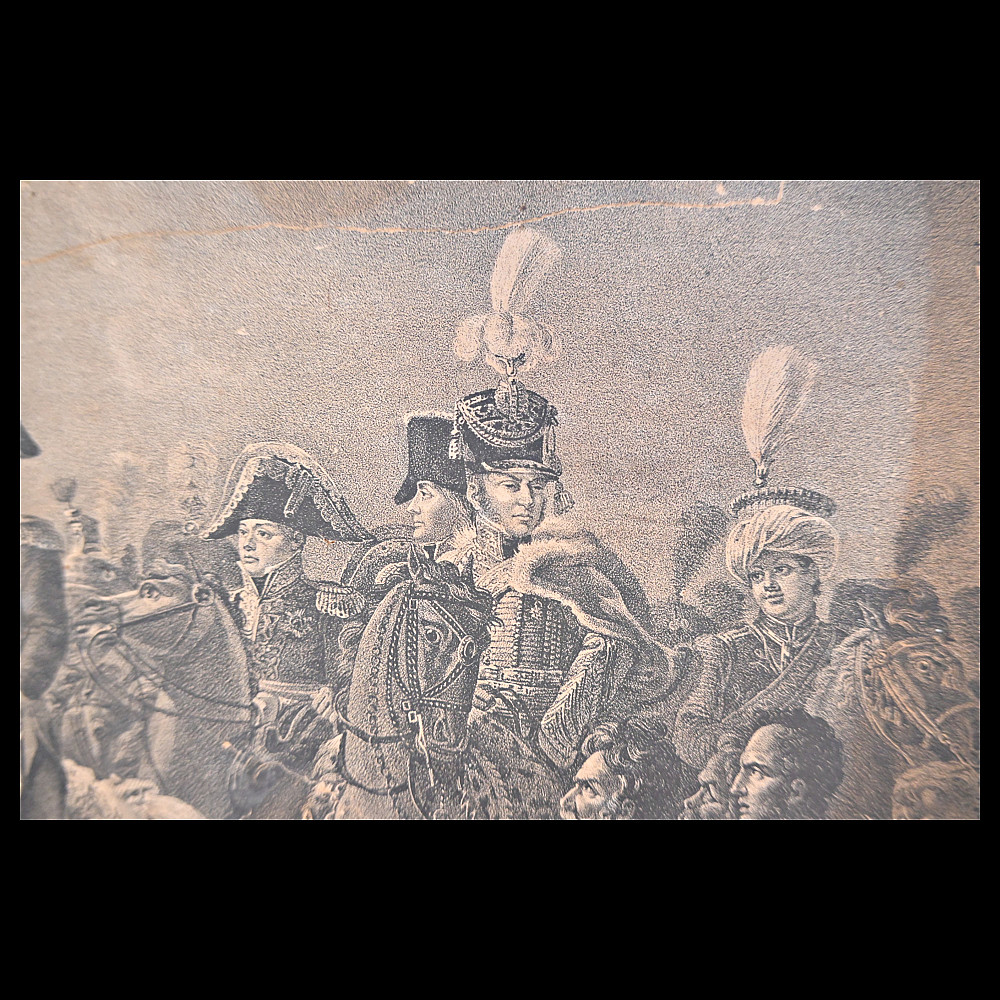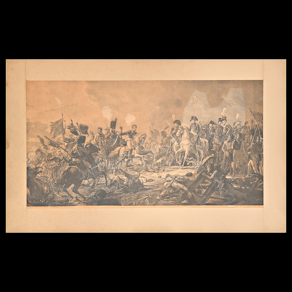 Engraving 1813 "The Battle of Austerlitz, December 2, 1805" by John Godefroy (1771 - 1839) after the monumental painting painted by Pascal Simon Gerard in 1810 and kept in Versailles. A masterpiece of military strategy, at sunrise (the famous sun of Austerlitz) Napoleon gained the upper hand over the Russian and Austrian armies. A wonderful engraving for collectors and interior decoration. Overall size 46x73 cm.