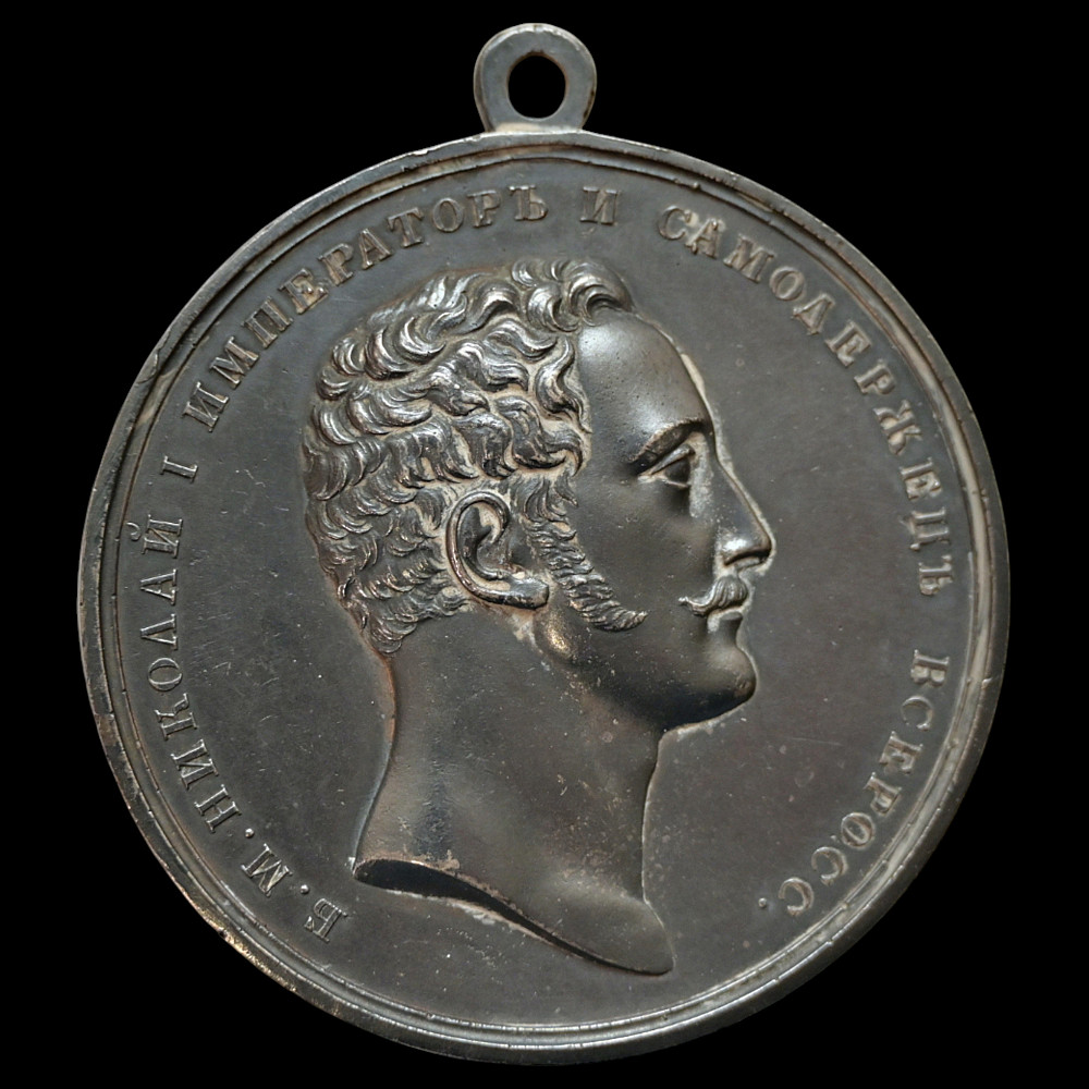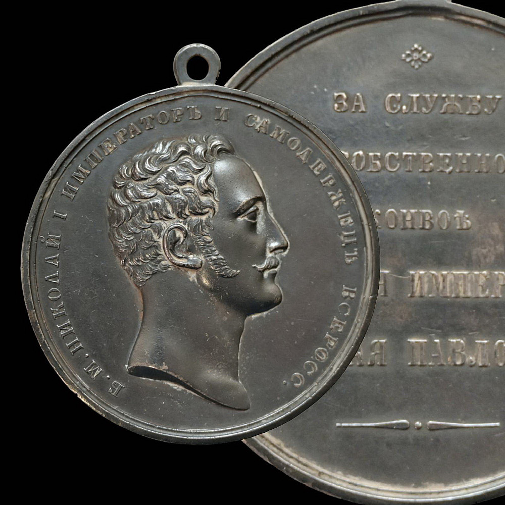 Medal “For Service in the Personal Convoy of Emperor Nicholas I”, Russia. A rare and historically significant Imperial Russian medal awarded to members of the Personal Convoy of Emperor Nicholas I. Obverse: Portrait of Emperor Nicholas I facing right, with the legend “Nicholas I, Emperor and Autocrat of All Russia”. Reverse: Inscription “For Service in the Personal Convoy of His Imperial Majesty Nicholas Pavlovich.” An important and scarce award of the Nicholas I era, presented exclusively to the elite Cossack bodyguards of the Emperor’s convoy. Material: Silver. Excellent condition. Diameter: approx. 5 cm.