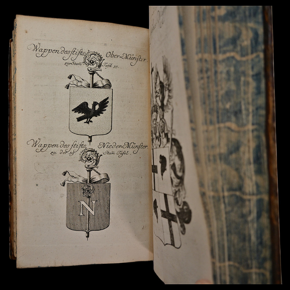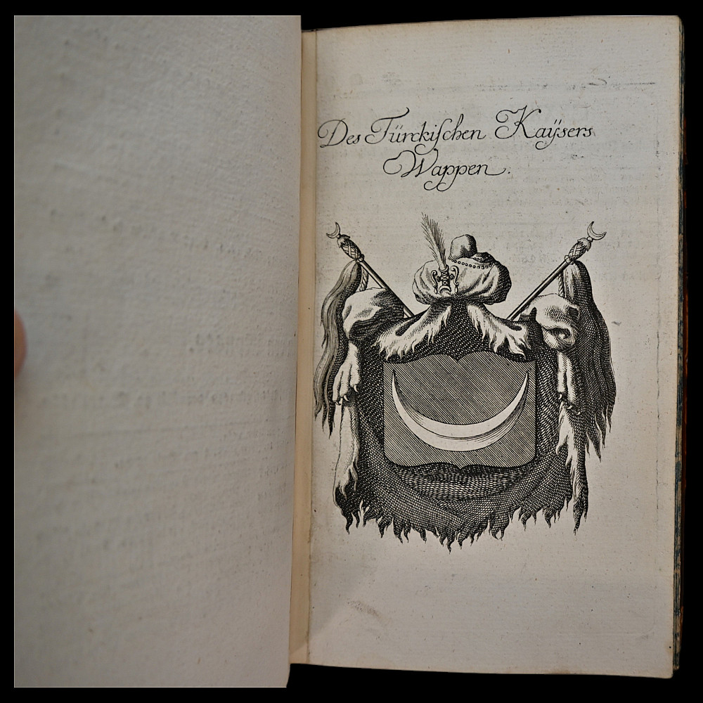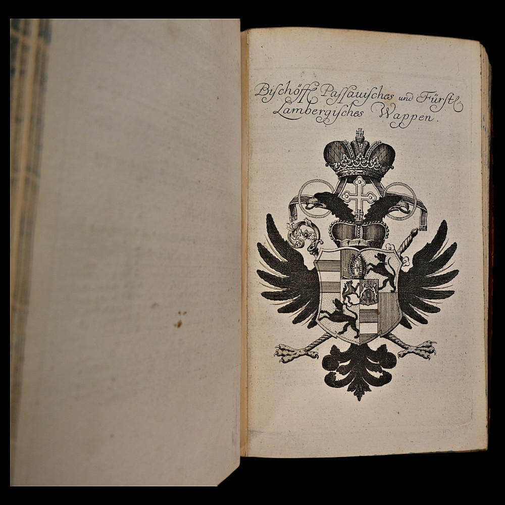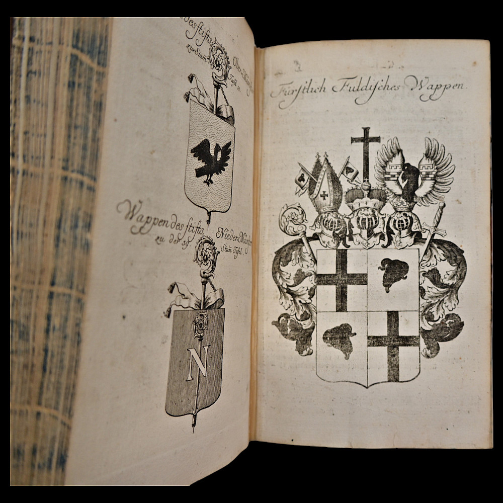 Rare book, 1754 – Coats of Arms of German Nobility – Fully Illustrated Heraldic Calendar, Bieling for Weigel, Nuremberg, 1754. Title: Wappen-Kalender auf das Jahr 1755, (enlarged and improved history, family and coat of arms calendar for the year.. 1755). Publisher: Bieling for Weigel, Nuremberg, 1754. Language: German. A rare and visually striking heraldic calendar featuring numerous full-page engravings of European noble family coats of arms. Produced as a genealogical and heraldic reference for the year 1755. Not collated. Original leather binding. Marbled edges. Spine with raised bands. Size 21x15x4 cm.