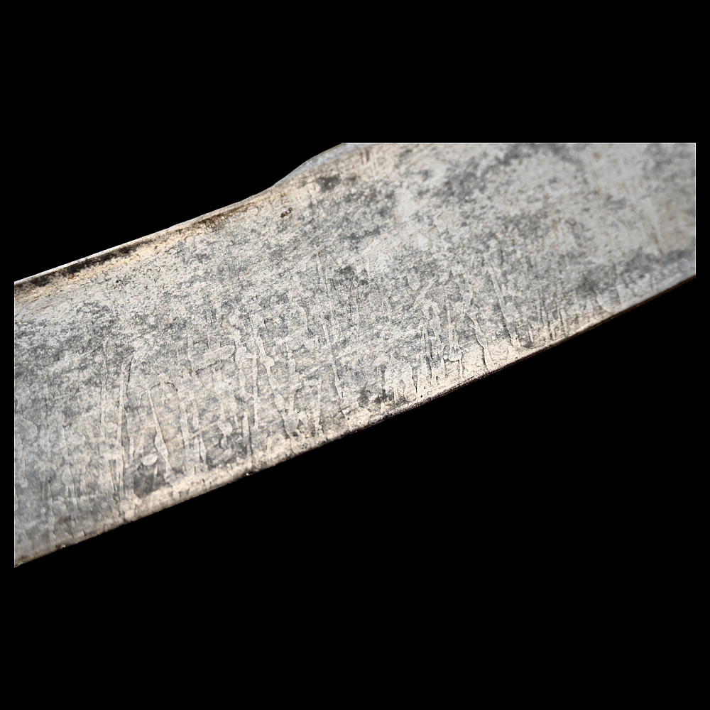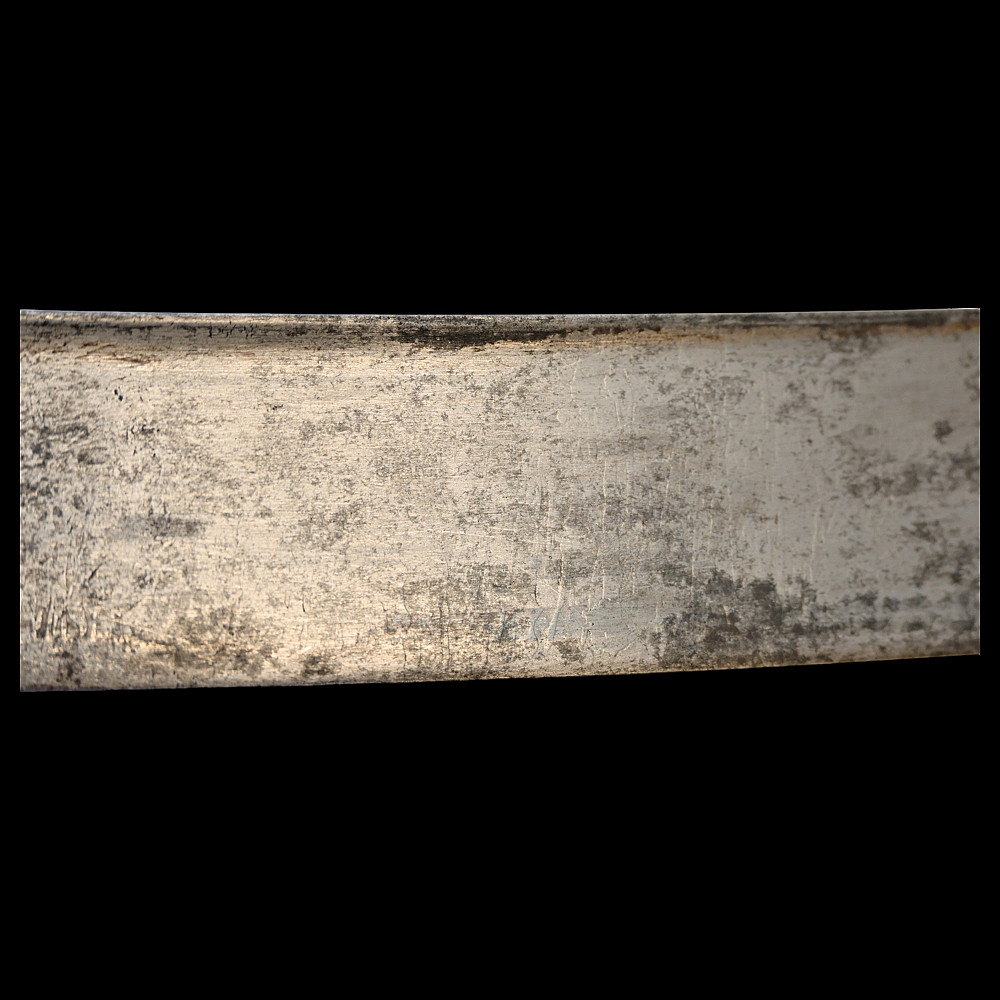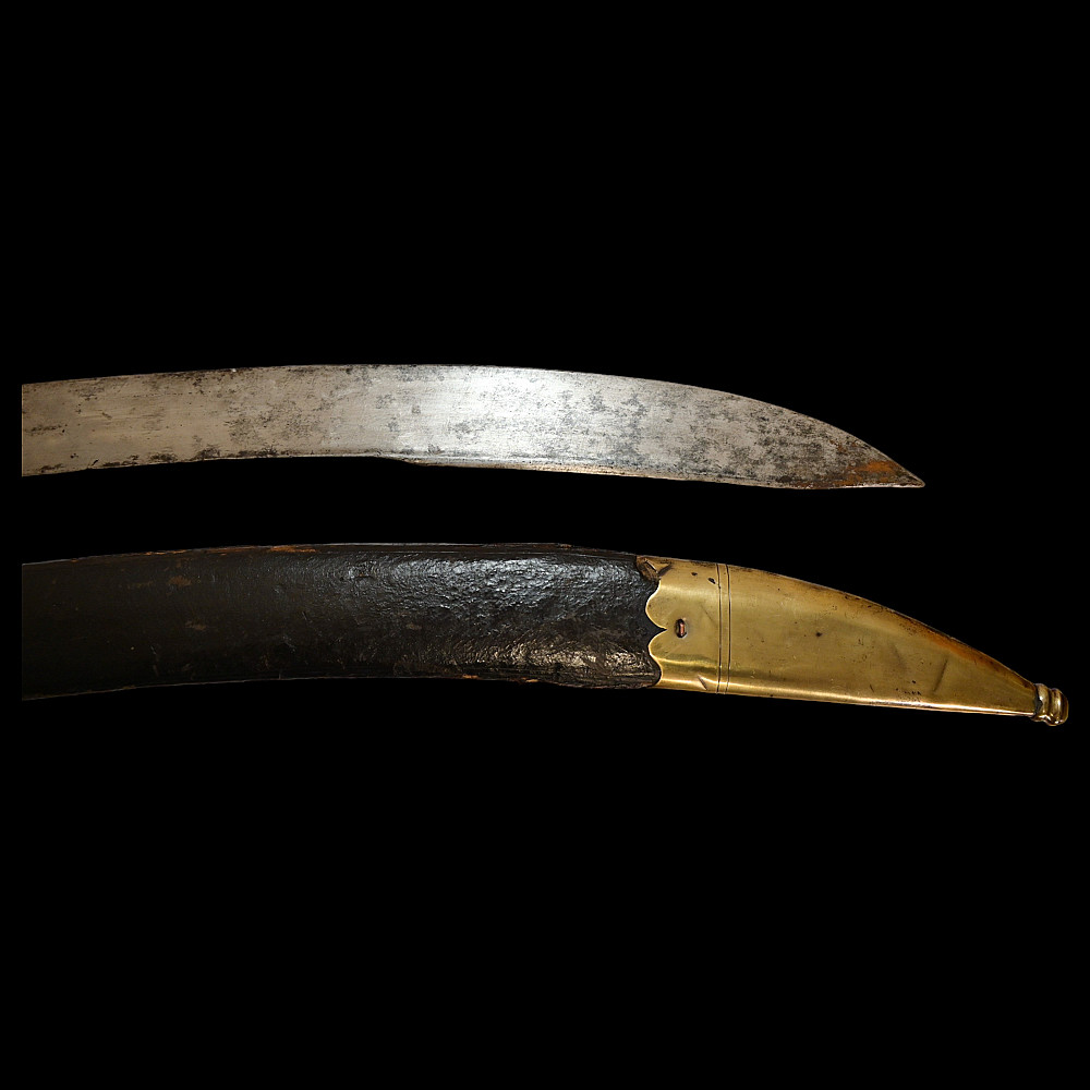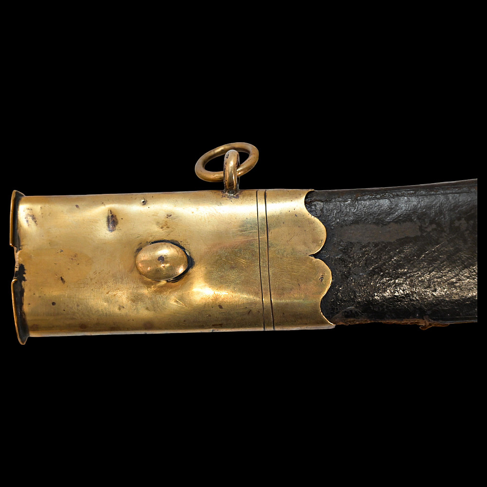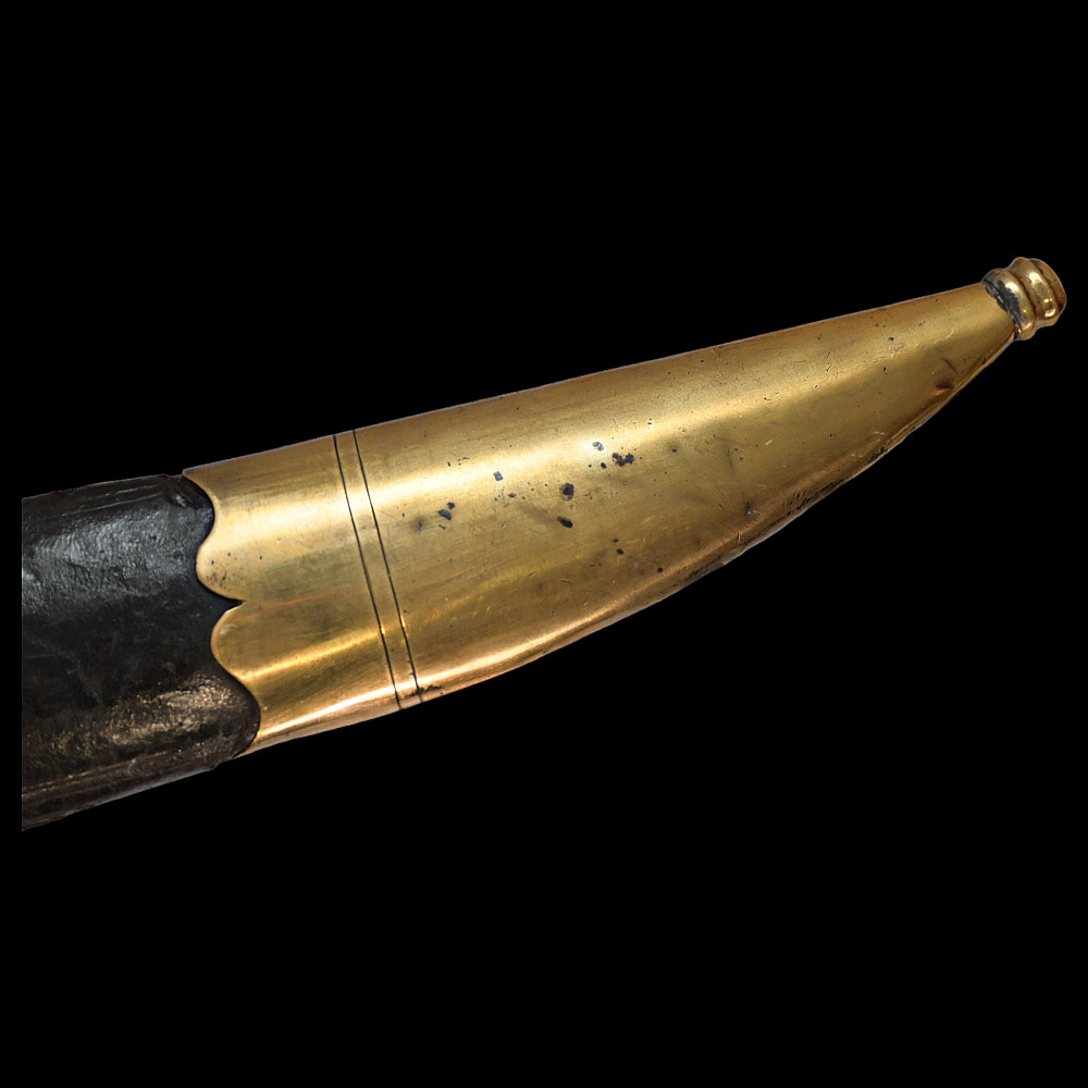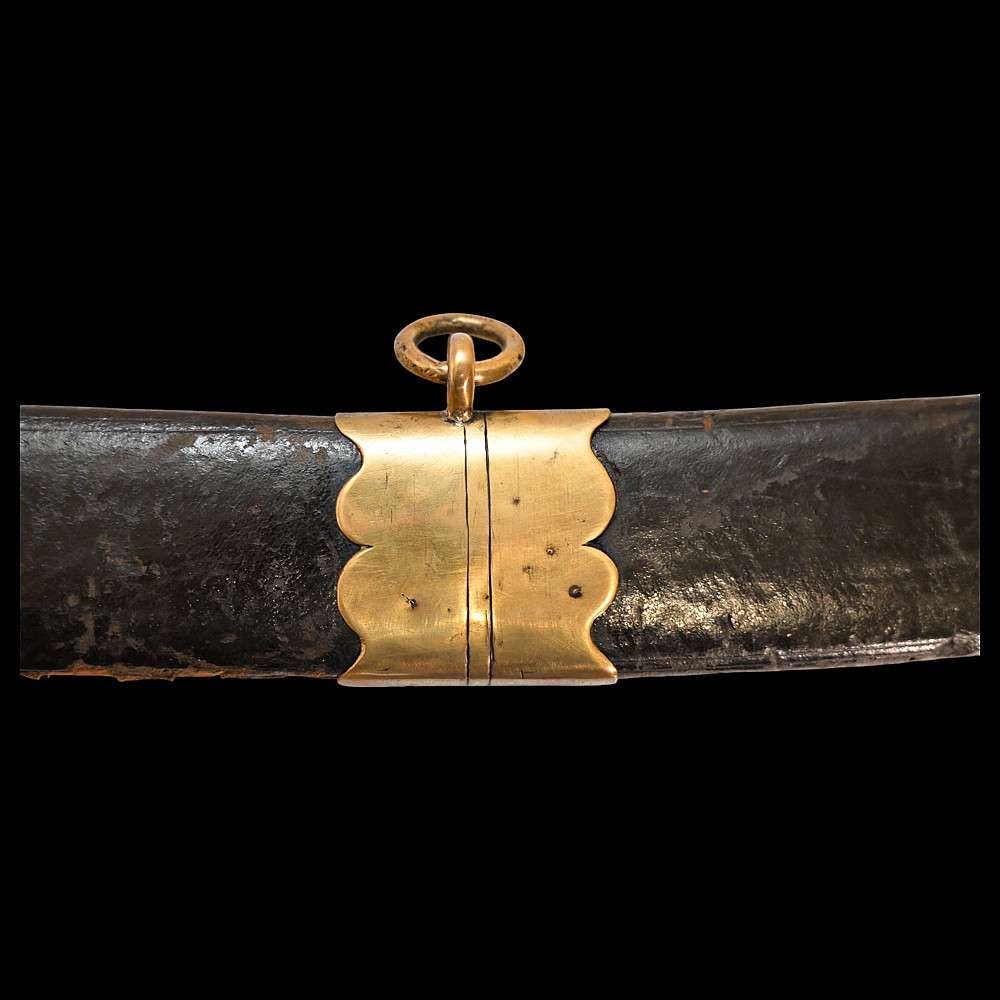 Rare French General's Saber, Louis XVI period, second half of 18th century. A very beautiful, massive steel blade, decorated with etched decor that imitates the patterns of Damascus steel. High-quality bronze hilt with a knight's helmet on the pommel. Wooden handle covered with leather. Wooden scabbard covered with leather with brass fittings. A very beautiful Napoleonic era collectible. Length 97 cm.