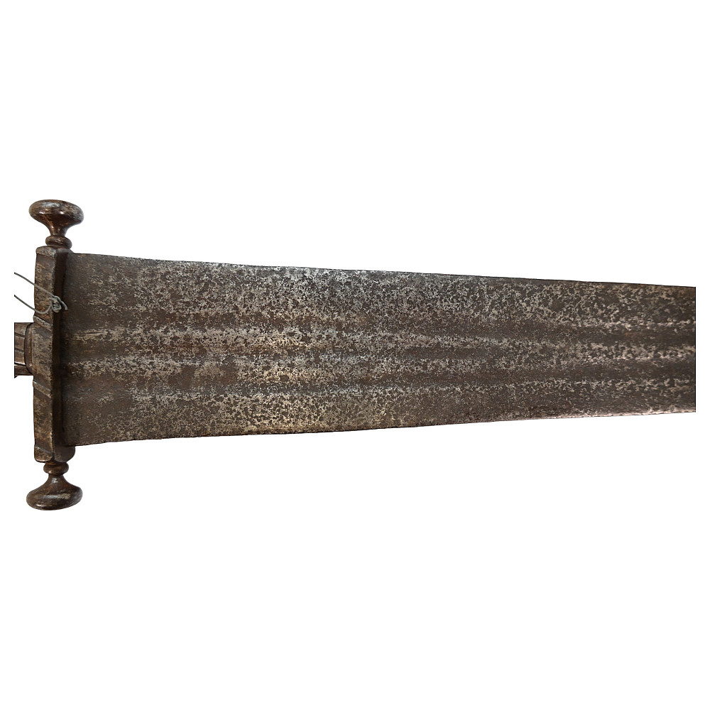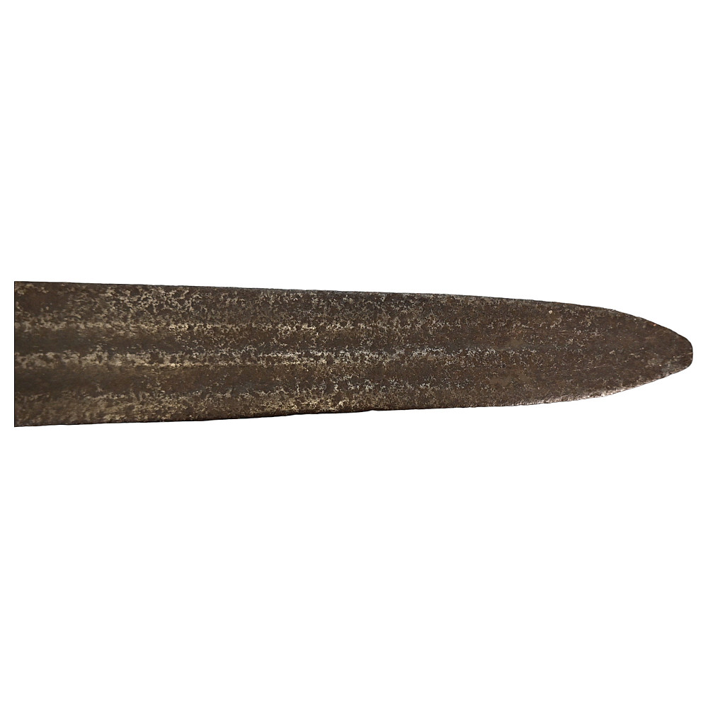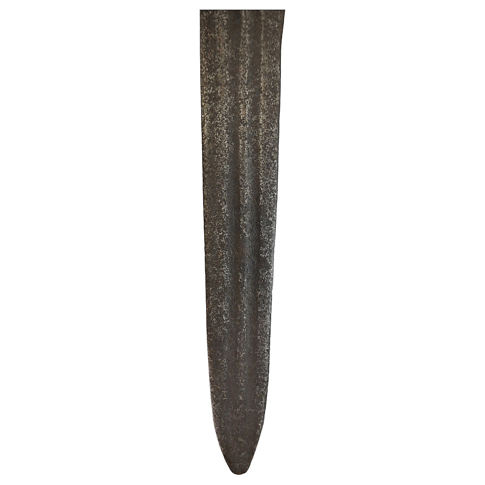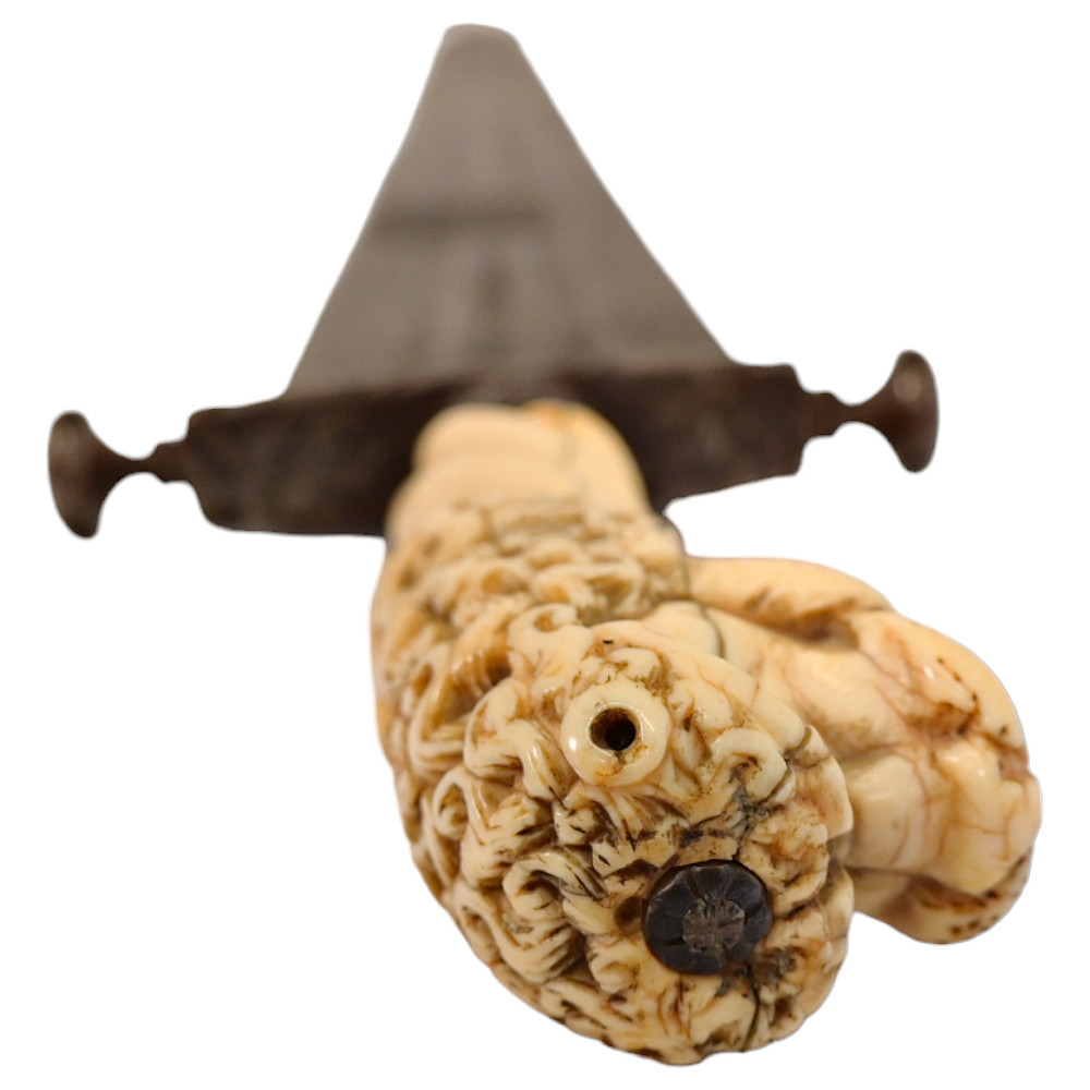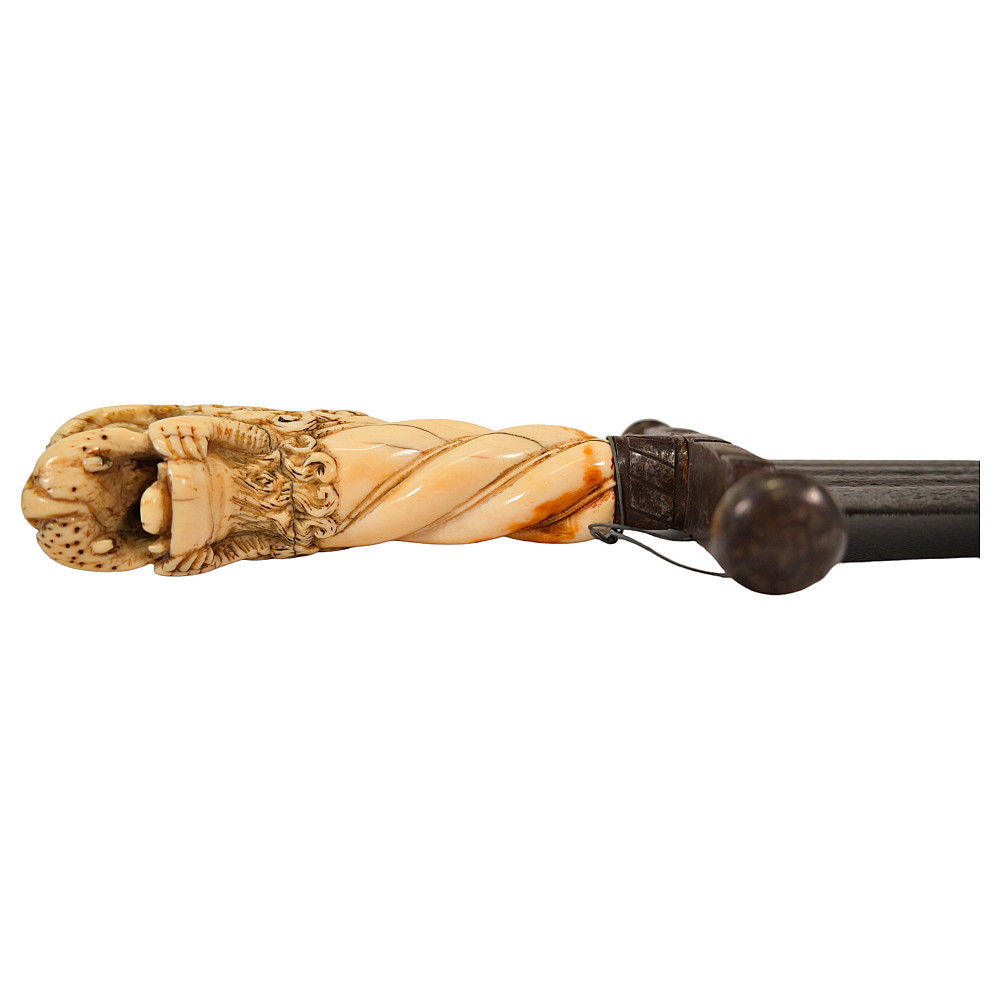 Rare Cinquedea type Sword, 16-17th Century, Italy. Wide, double-edged blade with three fullers on each side. The iron guard is skillfully made. Fine bone pommel carved in the shape of a lion's head. Rare and exquisite collectible.
