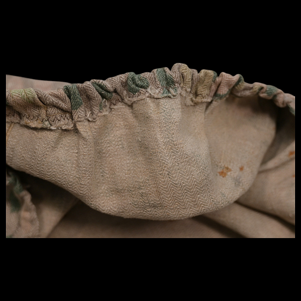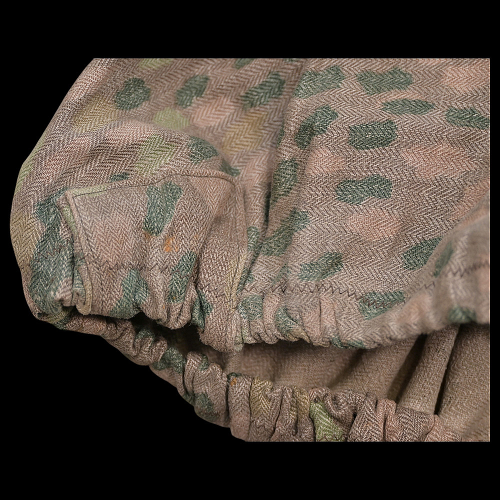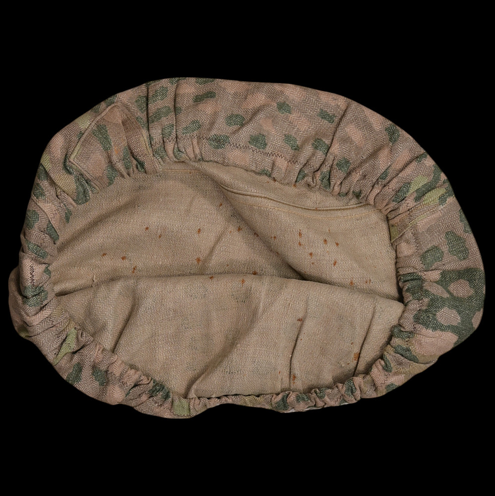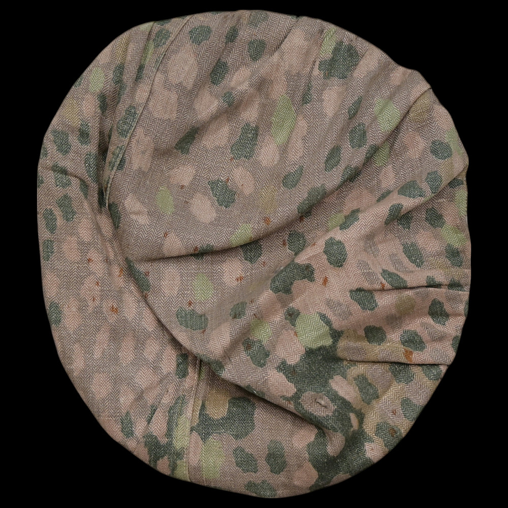 Rare WWII Nazi German Camouflage cover for Waffen SS helmet. Cover is a cotton/rayon blend, fabric has an HBT, (Herring Bone Twill), weave and machine printed dot pattern camouflage to the exterior. A wonderful collectible item of WWII memorabilia. Good condition