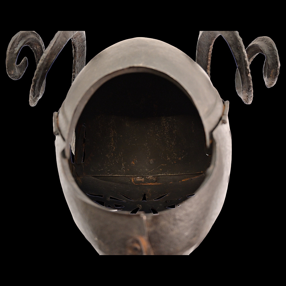 Helmet of King Henry VII of England. Copy of the 19th century. His name was Henry VIII Tudor, and in addition to the glory of Bluebeard, he left behind some excellent tournament armor. Henry received this helmet as a gift from the legendary Maximilian I, Holy Roman Emperor.Good condition. Height - 38cm