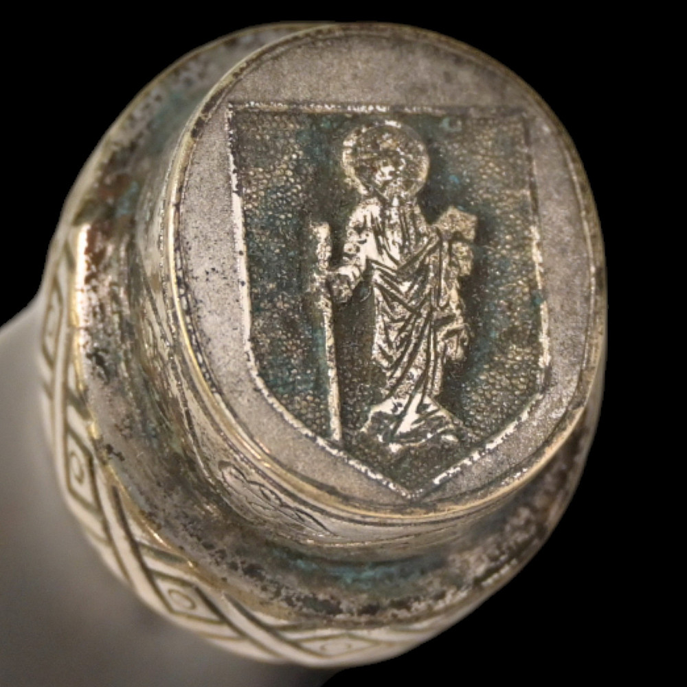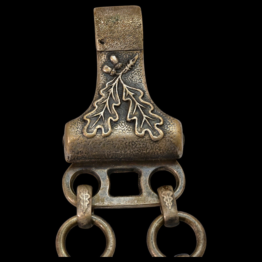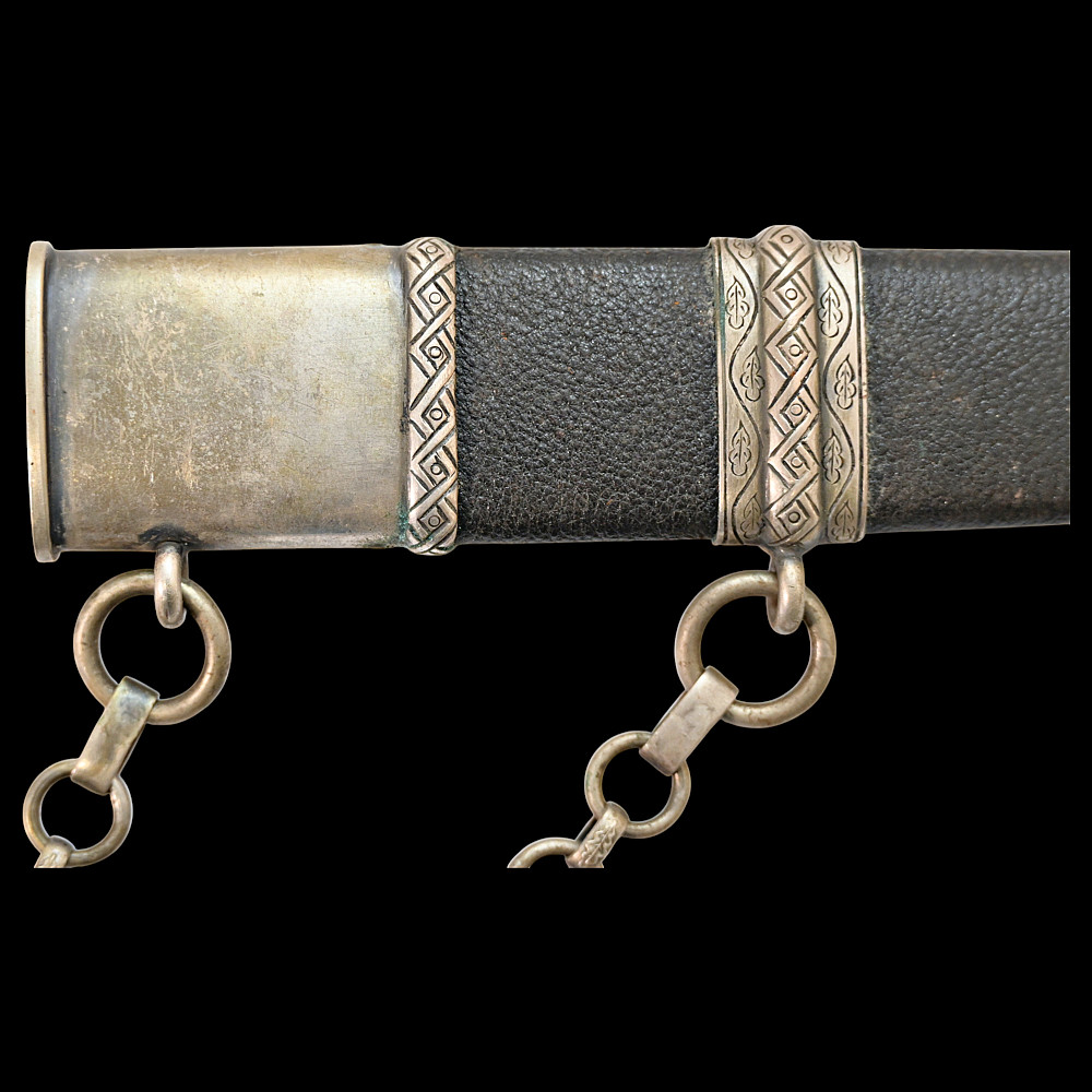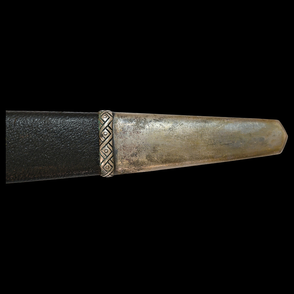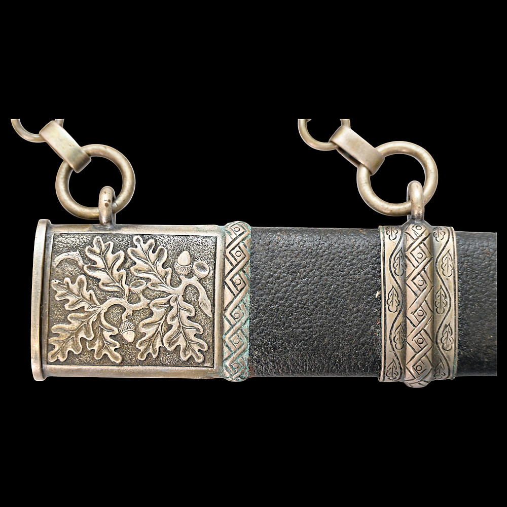 Third Reich Postschutz Officer's Award Dagger, model 1939. The Damascus blade is decorated with a gold inscription on both sides «Gewidmet vom Postschutz des Bez. Menstrein» and «Die Treue ist das Mark der Ehre" maker Paul Weyersberg. This model could not be identified in the literature. No guarantee of authenticity. Total length- 39,5cm.